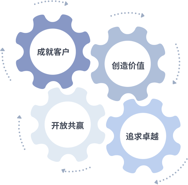 成就客户是一切决策的出发点,创造价值是衡量所有工作的标准,追求卓越是极速快3做事做人的态度,开放共赢是极速快3的格局也是最终的结果。价值观的齿轮环环相扣,推动着组织里的每个人不断向前。